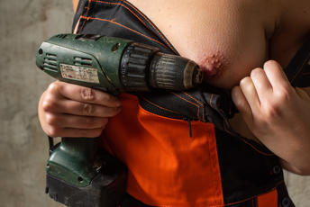 Hot Ukrainian brunette Oxana Chic has a talent for home improvement. However, she admits her progress is slow for two main reasons: first, she’s easily distracted, and second, she stores her kinky kit in her toolbox.